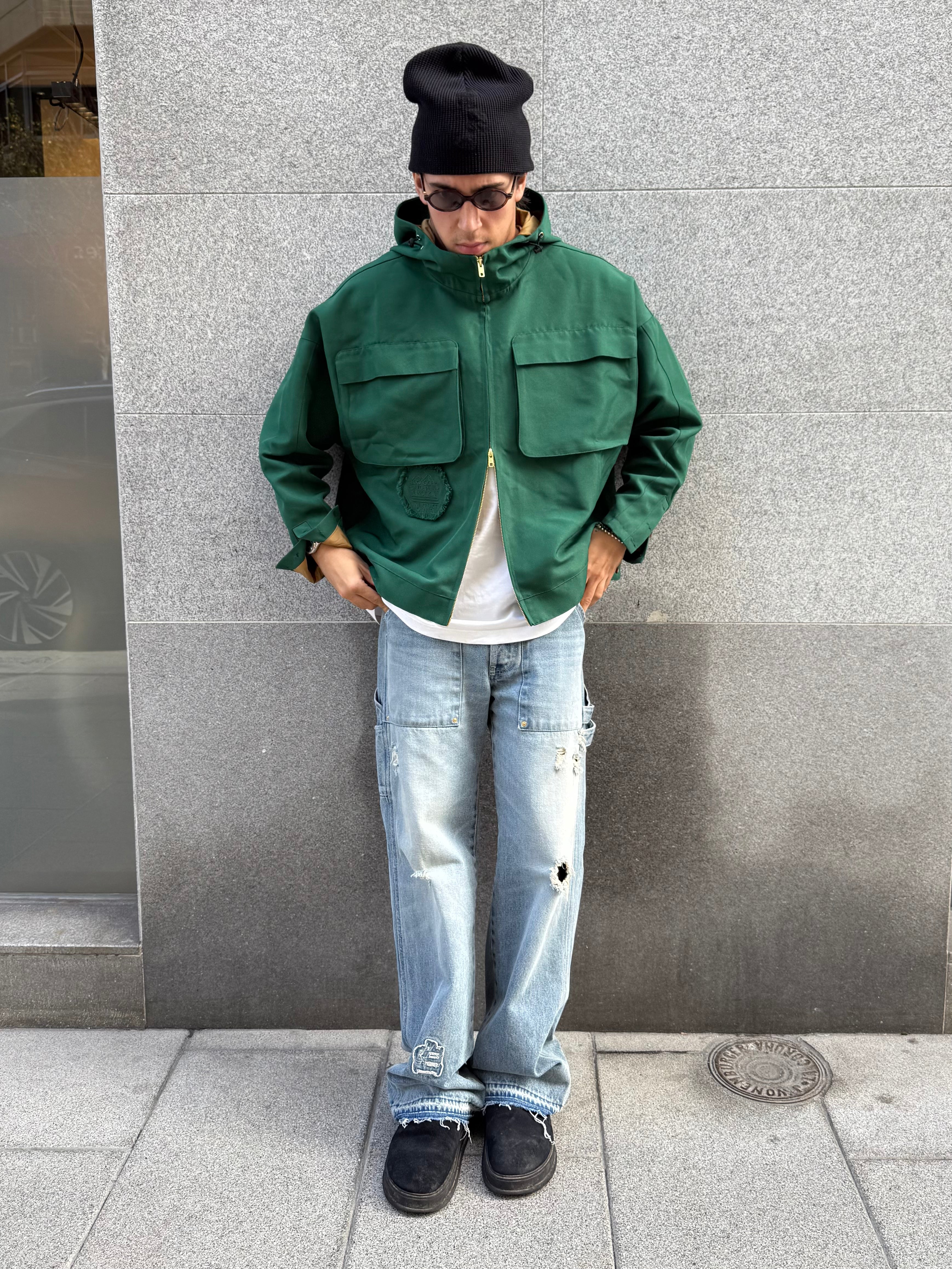 MADE FROM 375GSM DOUBLE-THREAD NYLON WITH A SUBTLE MATTE COATING. WINDPROOF, WATER-RESISTANT, AND BREATHABLE. HIDDEN ZIPPERS, SIDE POCKETS & SHARP LINES. WARDROBE ESSENTIAL.