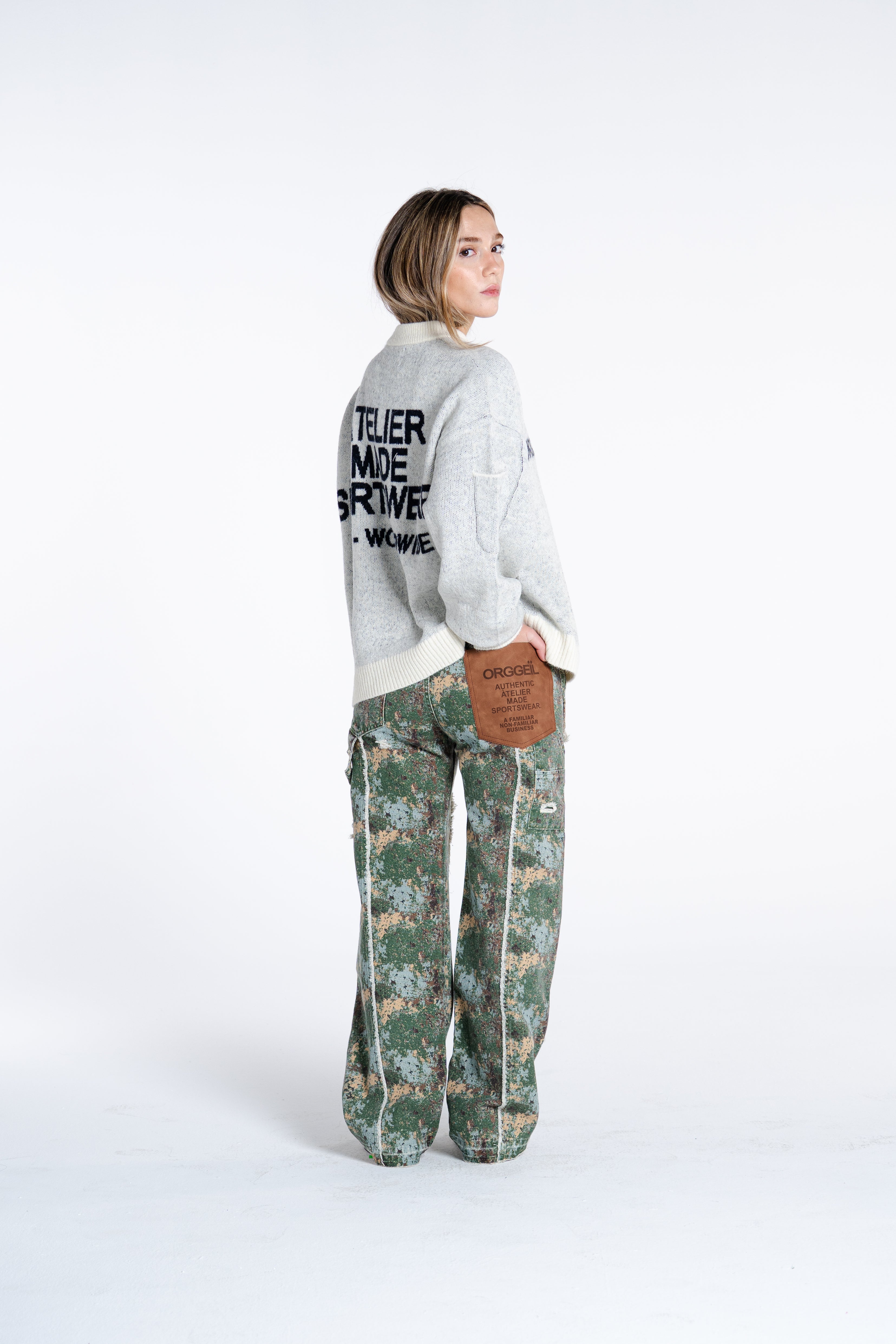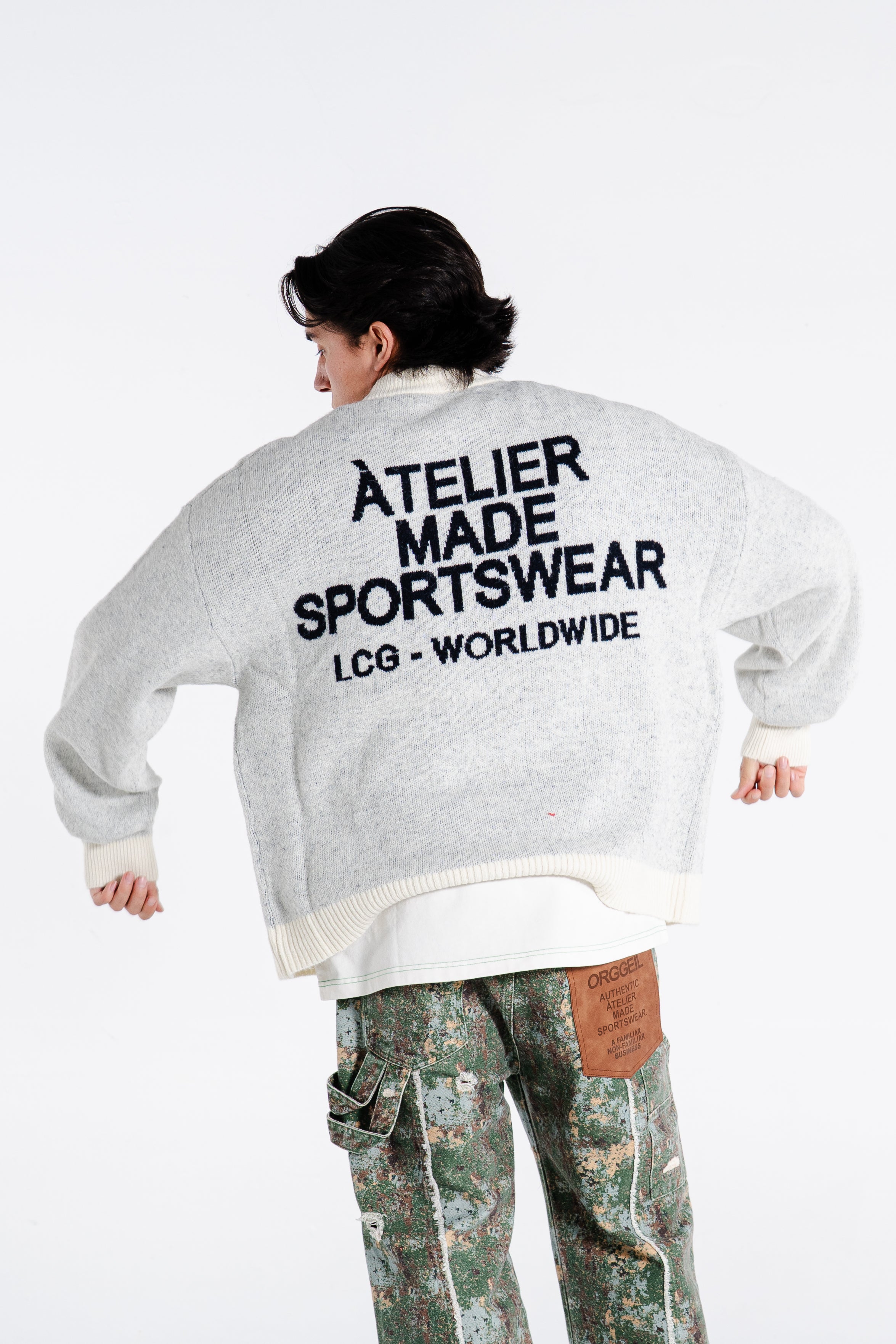 MADE IN A CUSTOM 80% WOOL - 20% NYLON HEAVY BLEND IN A UPDATED BOXY FIT TO CREATE A GARMENT THAT SPEAKS ÀTELIER SPORTSWEAR FOR ITSELF.