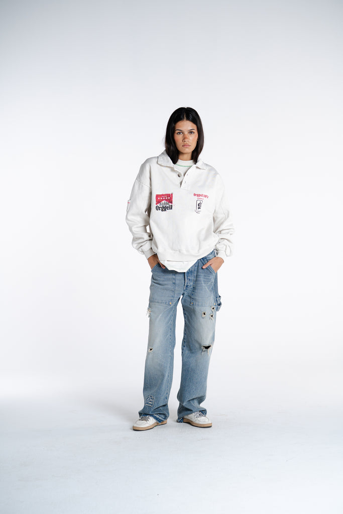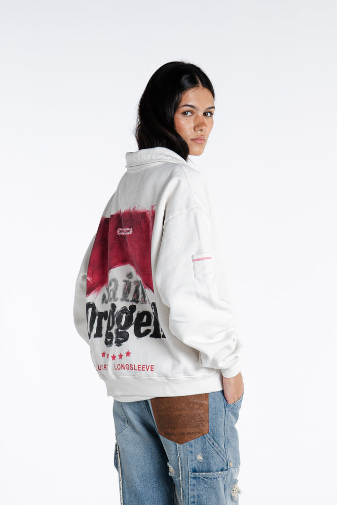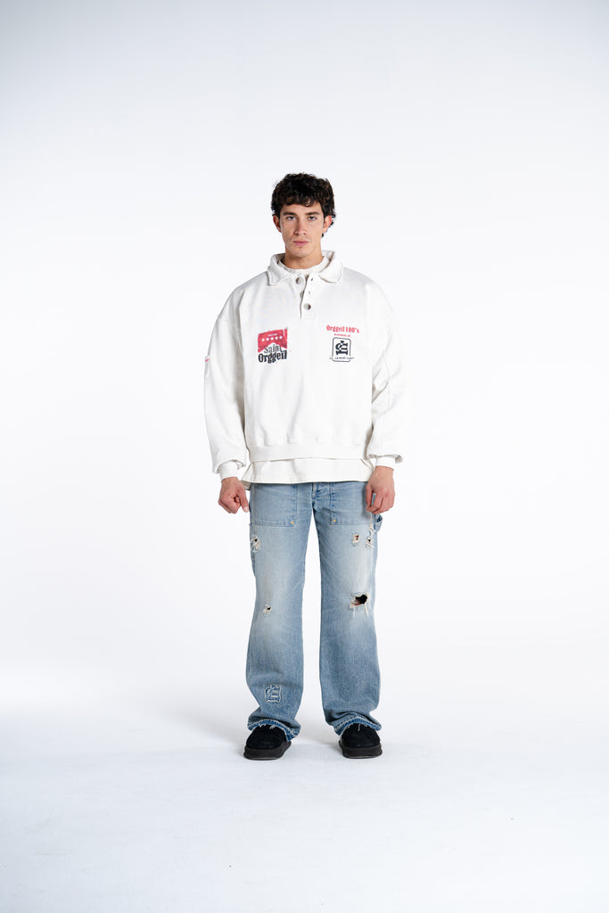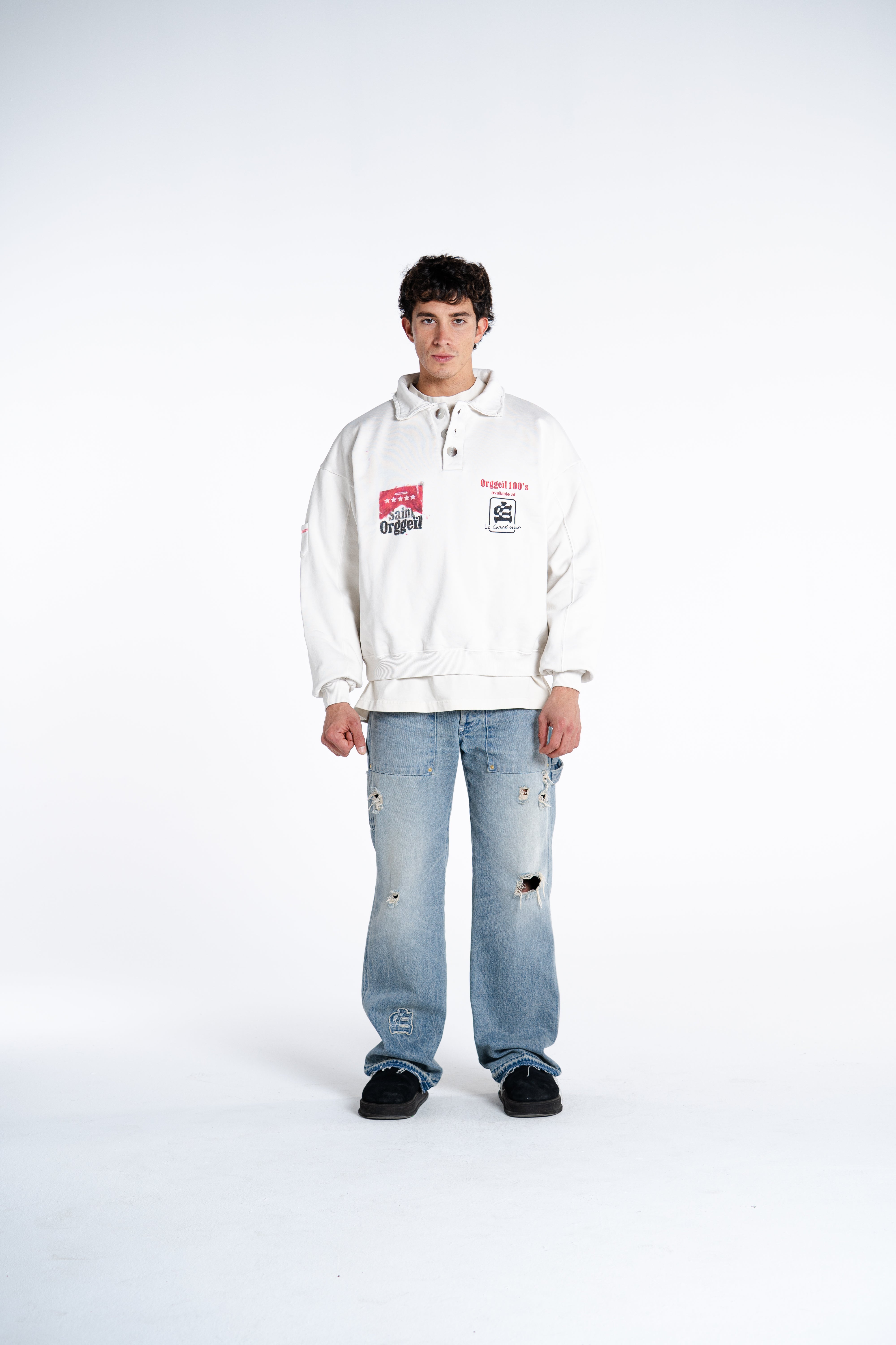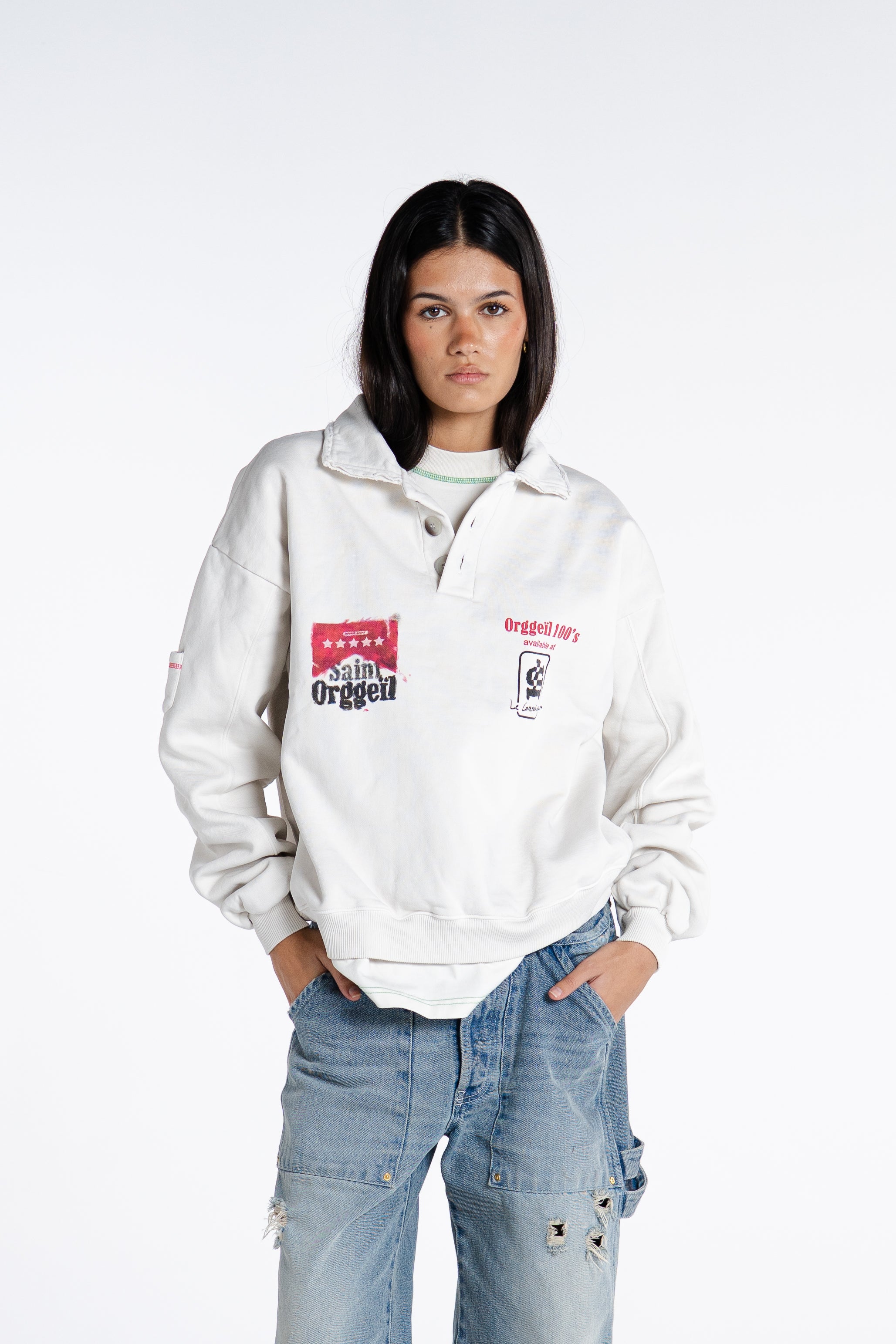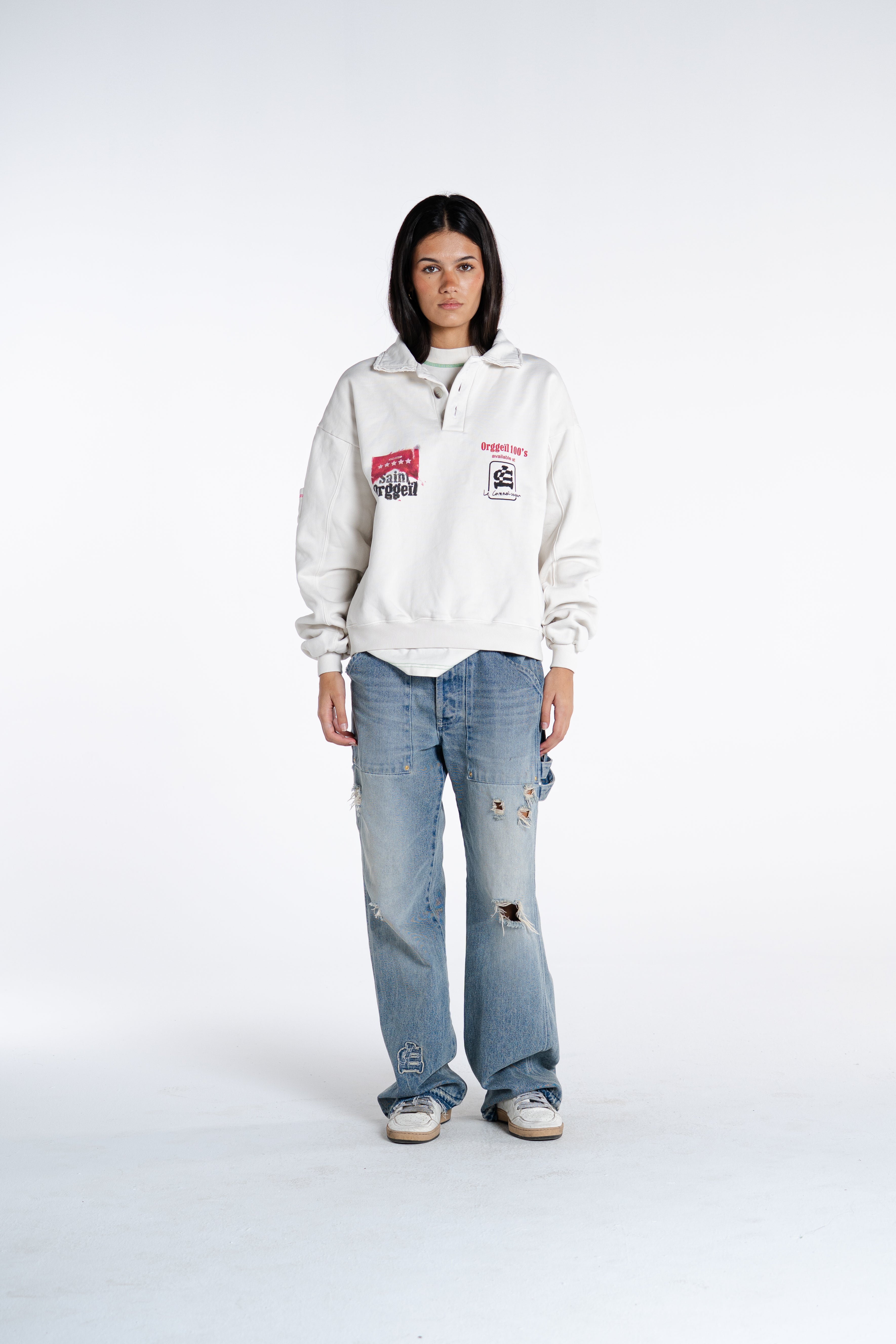 330GSM HEAVY COTTON WITH A THREE-BUTTON CUT AND CLEAN V-SILHOUETTE. OUR SIGNATURE DEL RIO GRAPHIC. A BRAND HISTORICAL HIT TURNED WINTER ESSENTIAL. NOW LOOKS EVEN SHARPER ON THIS UNEXPECTED CANVAS.