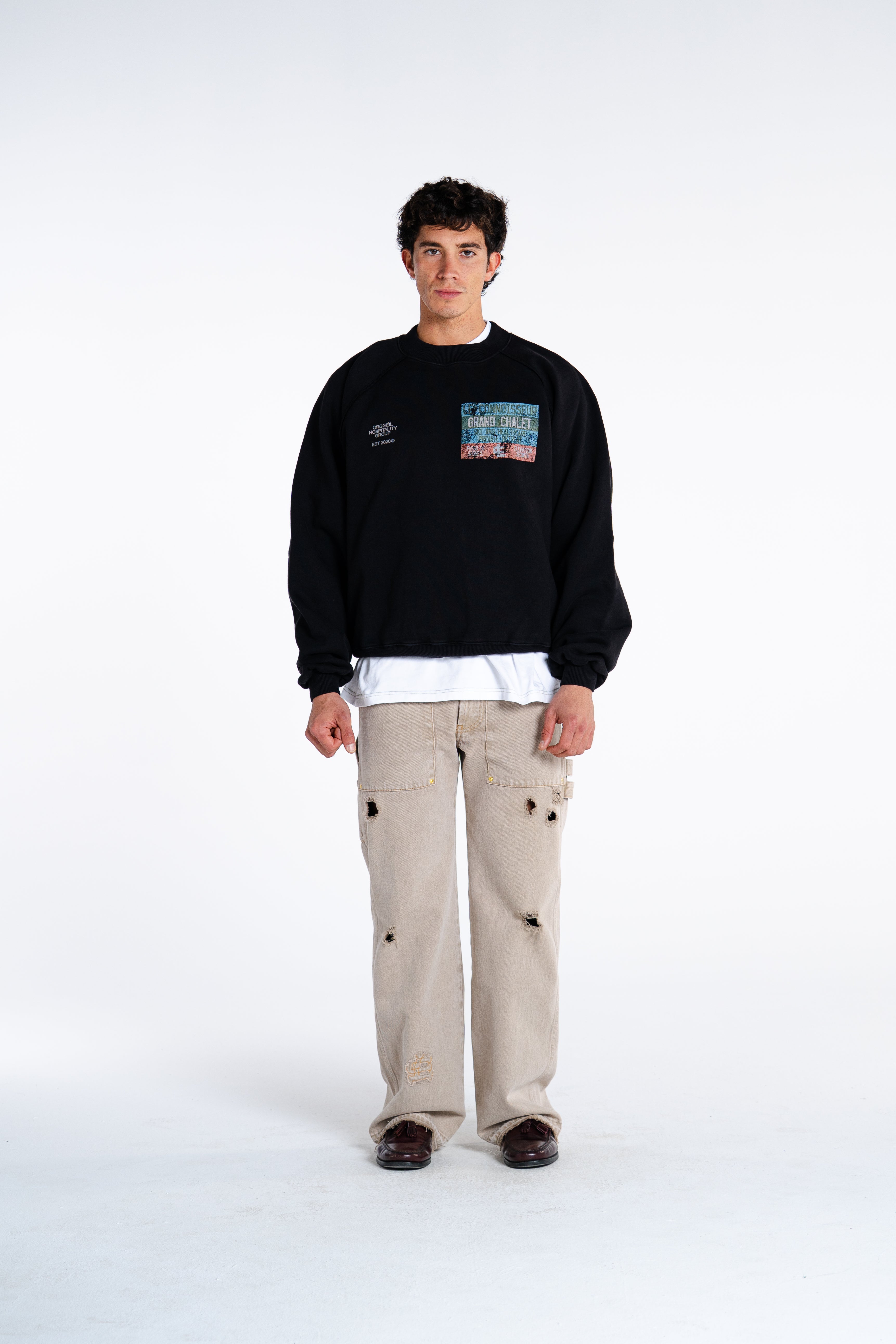 CRAFTED FROM HEAVYWEIGHT COTTON WITH A SOFT, BRUSHED INTERIOR AND RAGLAN SLEEVES FOR A CLEAN, RELAXED FALL. INSPIRED BY OUR GRAND CHALET T-SHIRT, NOW TRANSFORMED INTO A WINTER-READY CREWNECK. MADE FOR FIREPLACE NIGHTS, MOUNTAIN AIR AND THAT EFFORTLESS “CHALET OWNER” ENERGY.