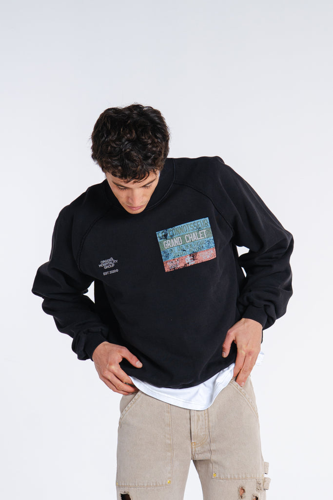 GRAND CHALET HEAVY RAGLAN CREWNECK was released the 26th of November 2025 as part of the Black Friday 2025 Drop in a single run of 150 units.