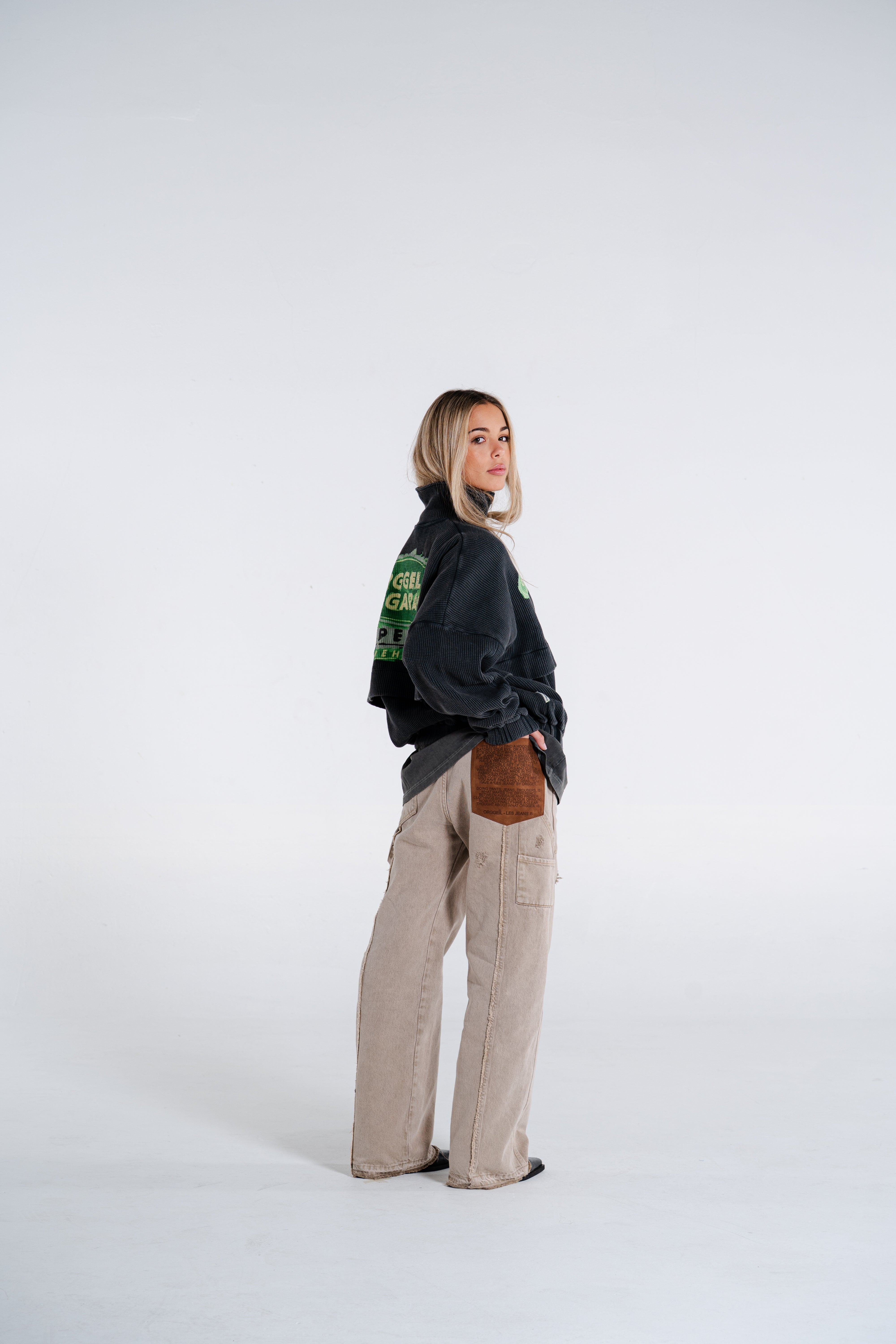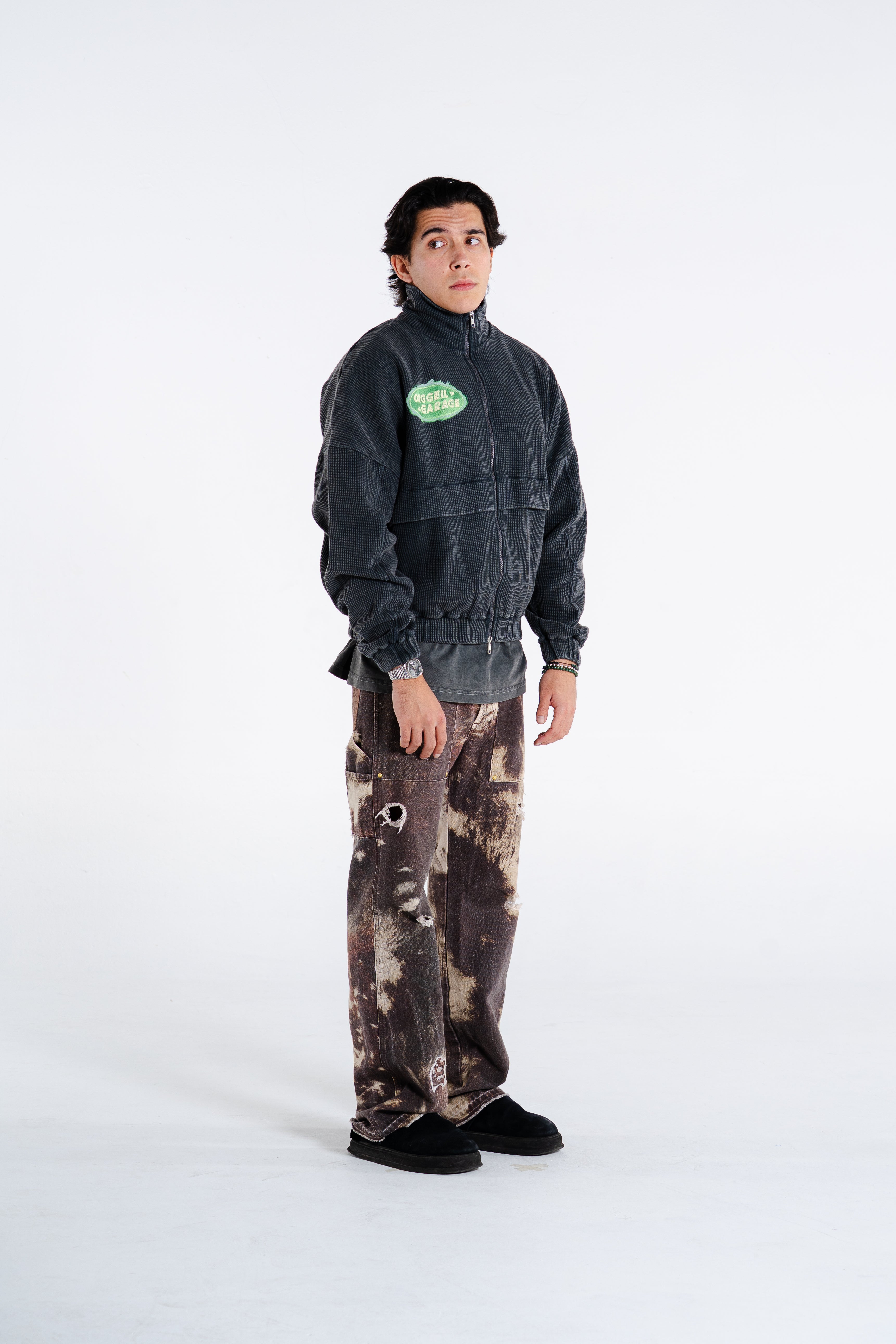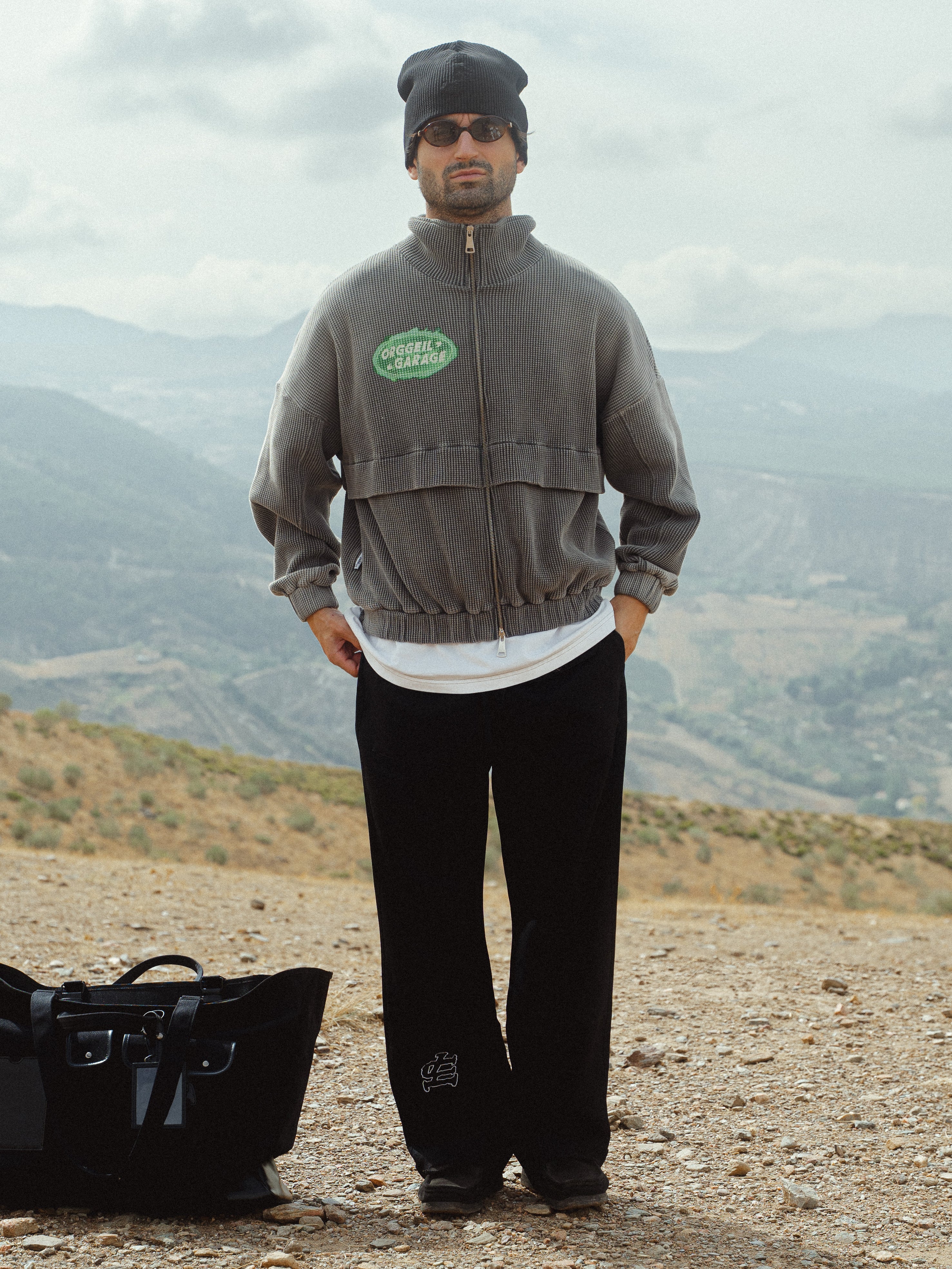 CUT FROM HEAVY 420GSM WAFFLE COTTON, GARMENT-DYED FOR A VINTAGE FADE. RELAXED TRACK FIT WITH SUBTLE STRETCH AND WORN-IN TEXTURE. WHEN COMFORT MEETS BAD DECISIONS.