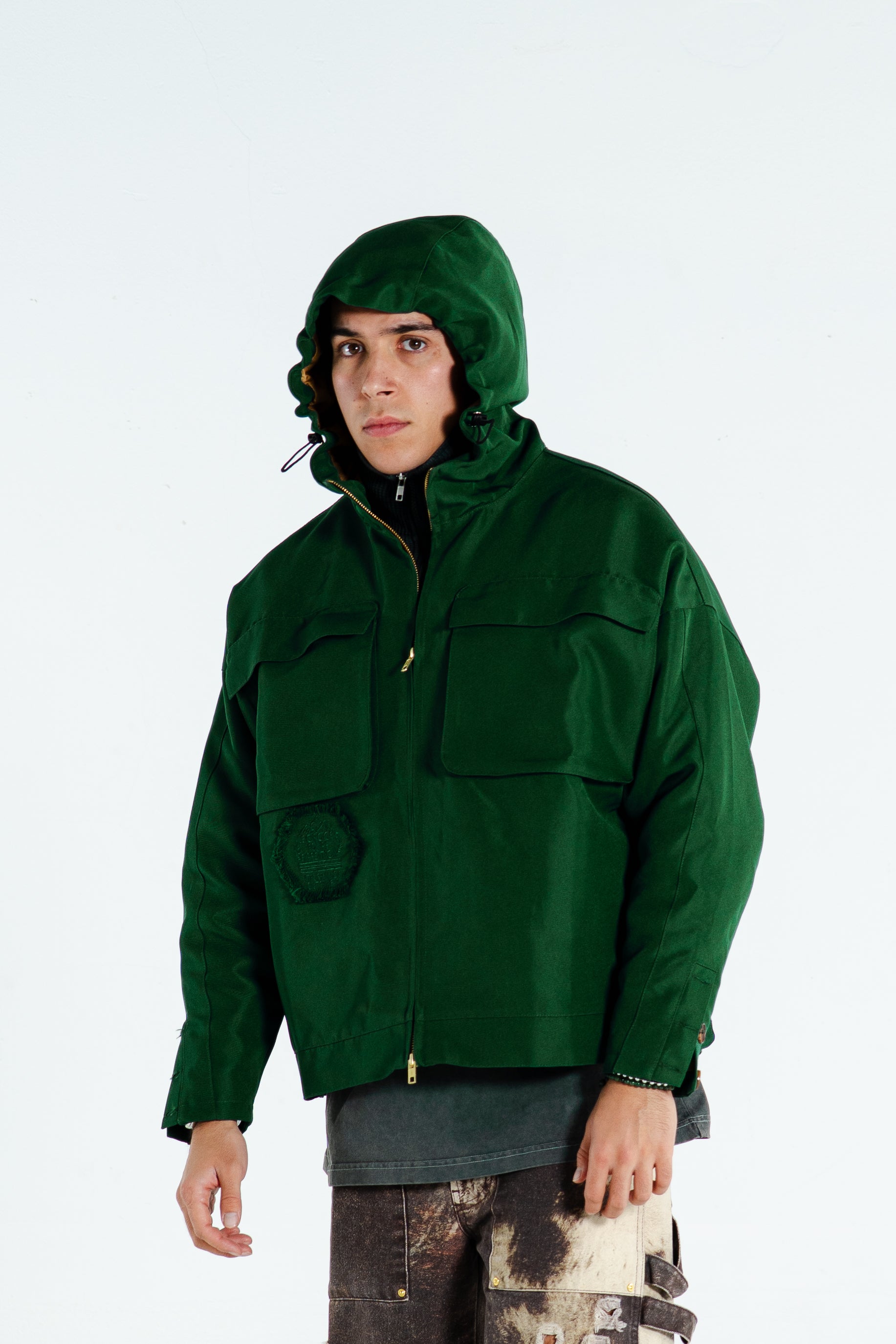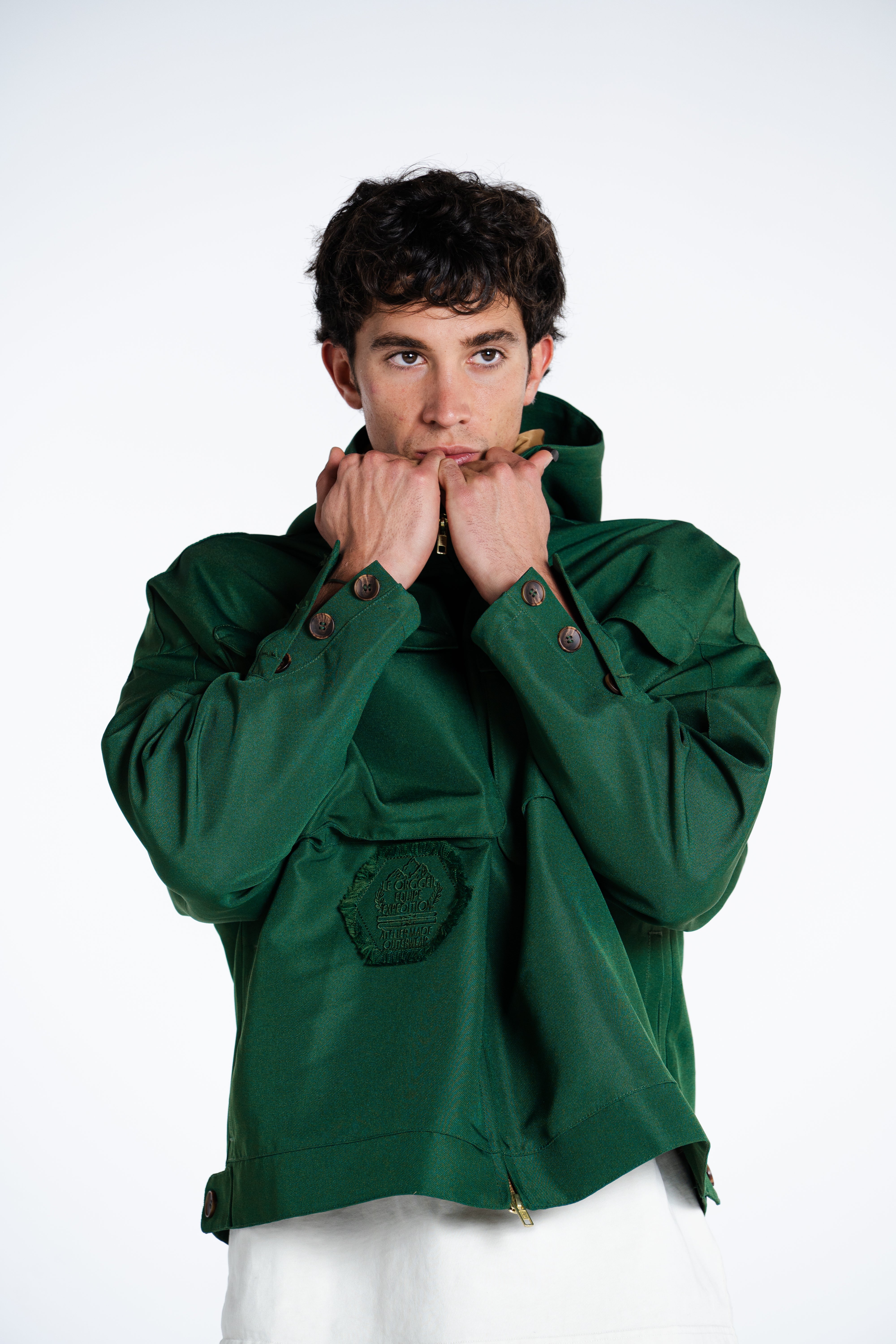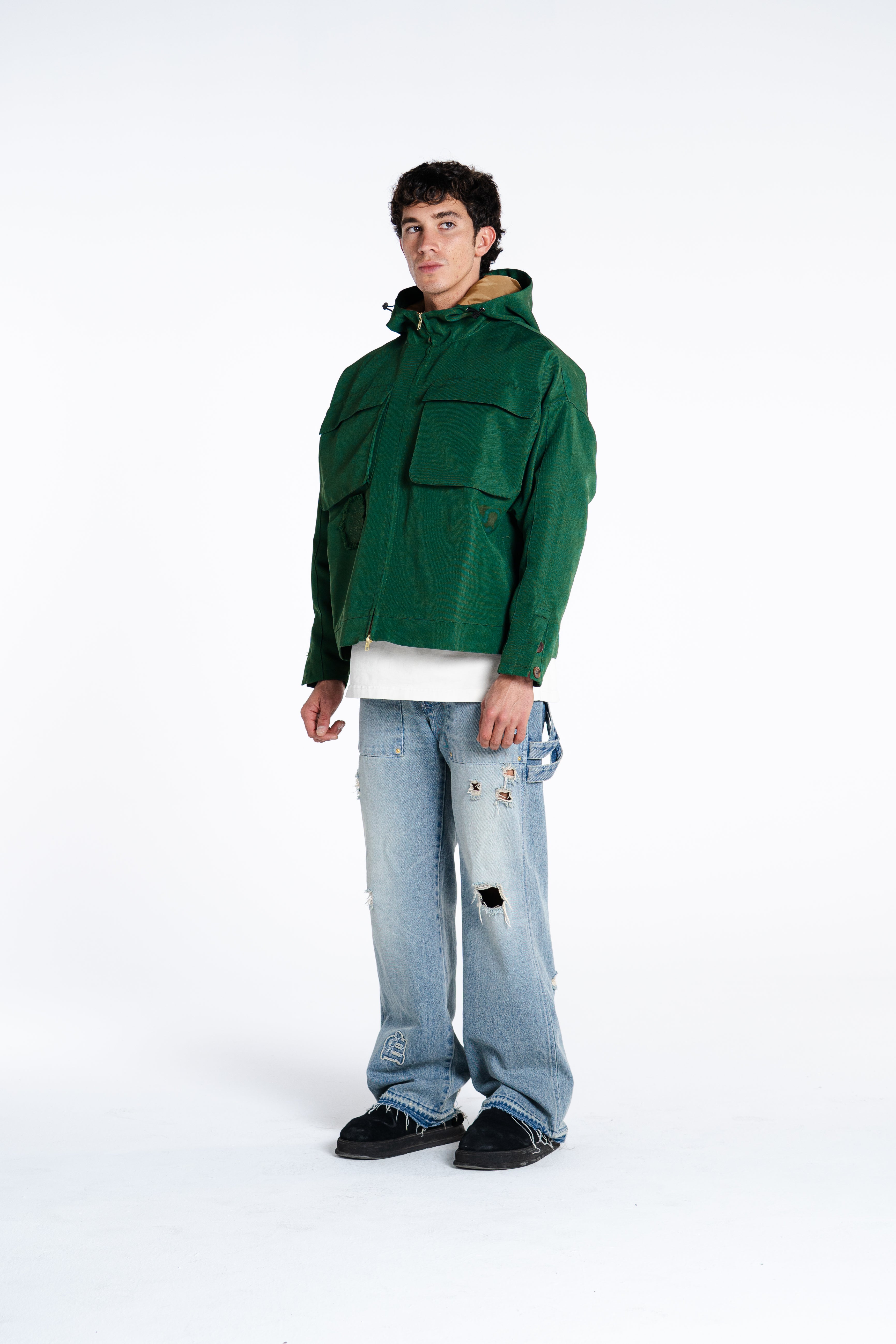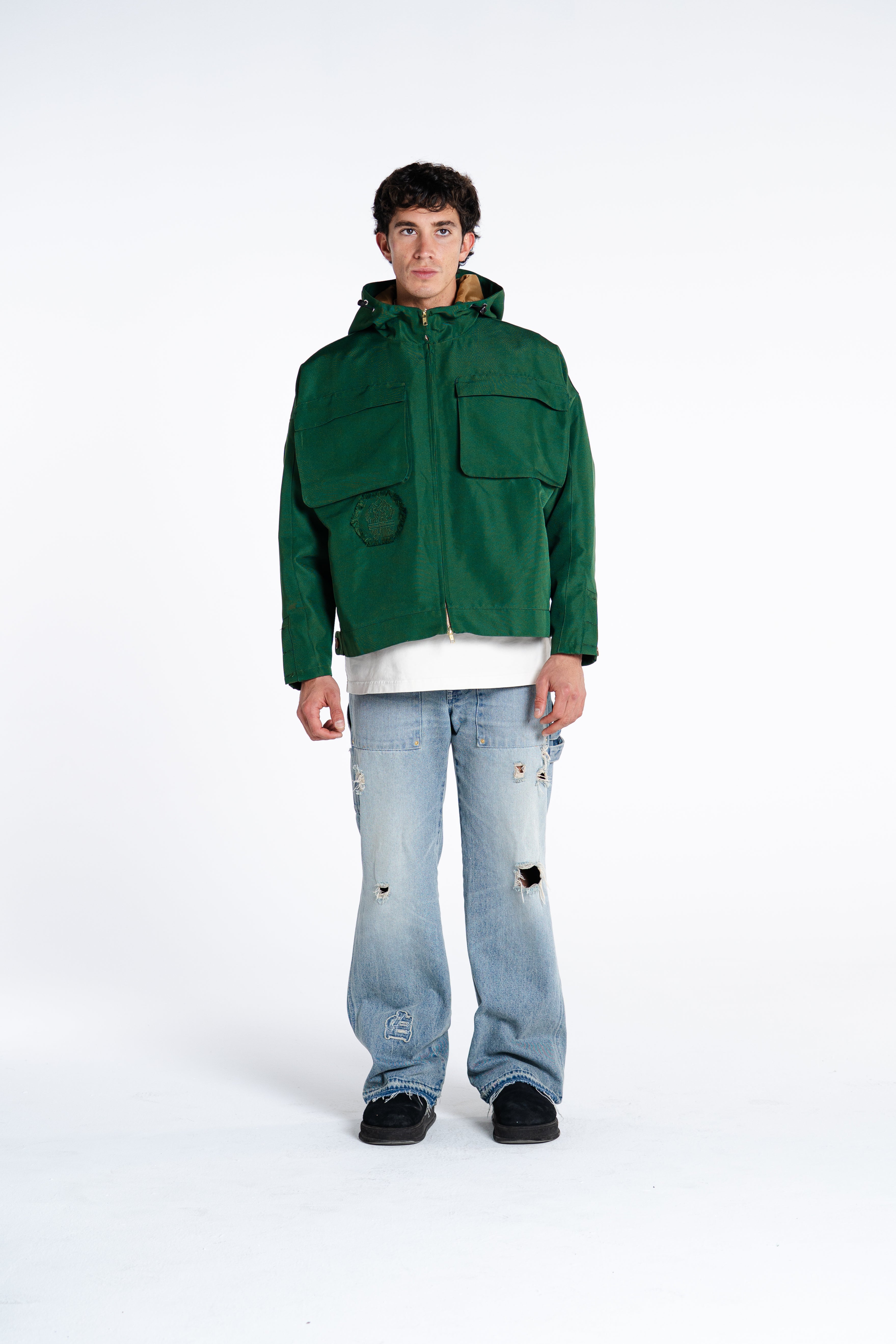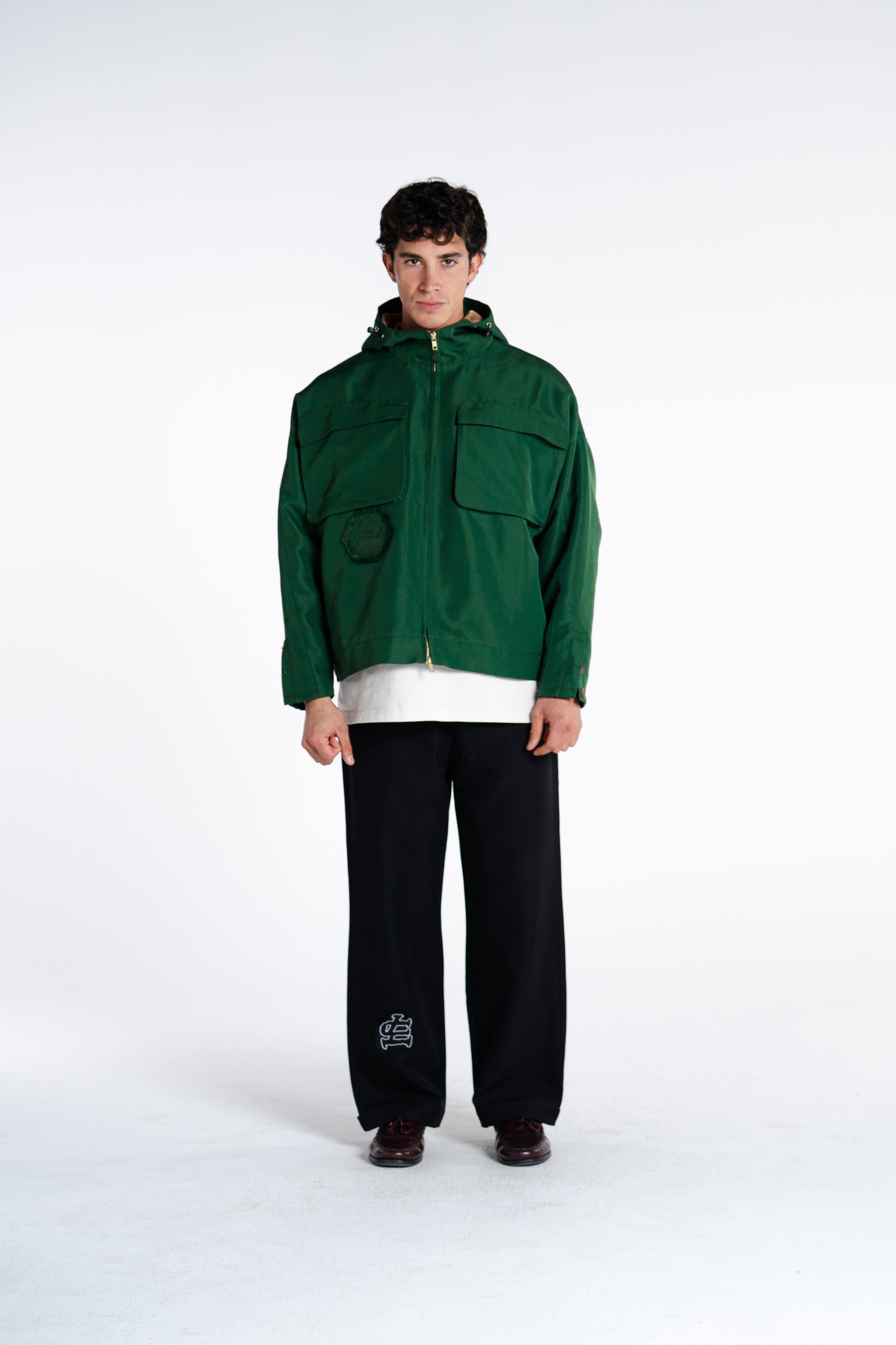 MADE FROM 375GSM DOUBLE-THREAD NYLON WITH A SUBTLE MATTE COATING. WINDPROOF, WATER-RESISTANT, AND BREATHABLE. HIDDEN ZIPPERS, SIDE POCKETS & SHARP LINES. WARDROBE ESSENTIAL.