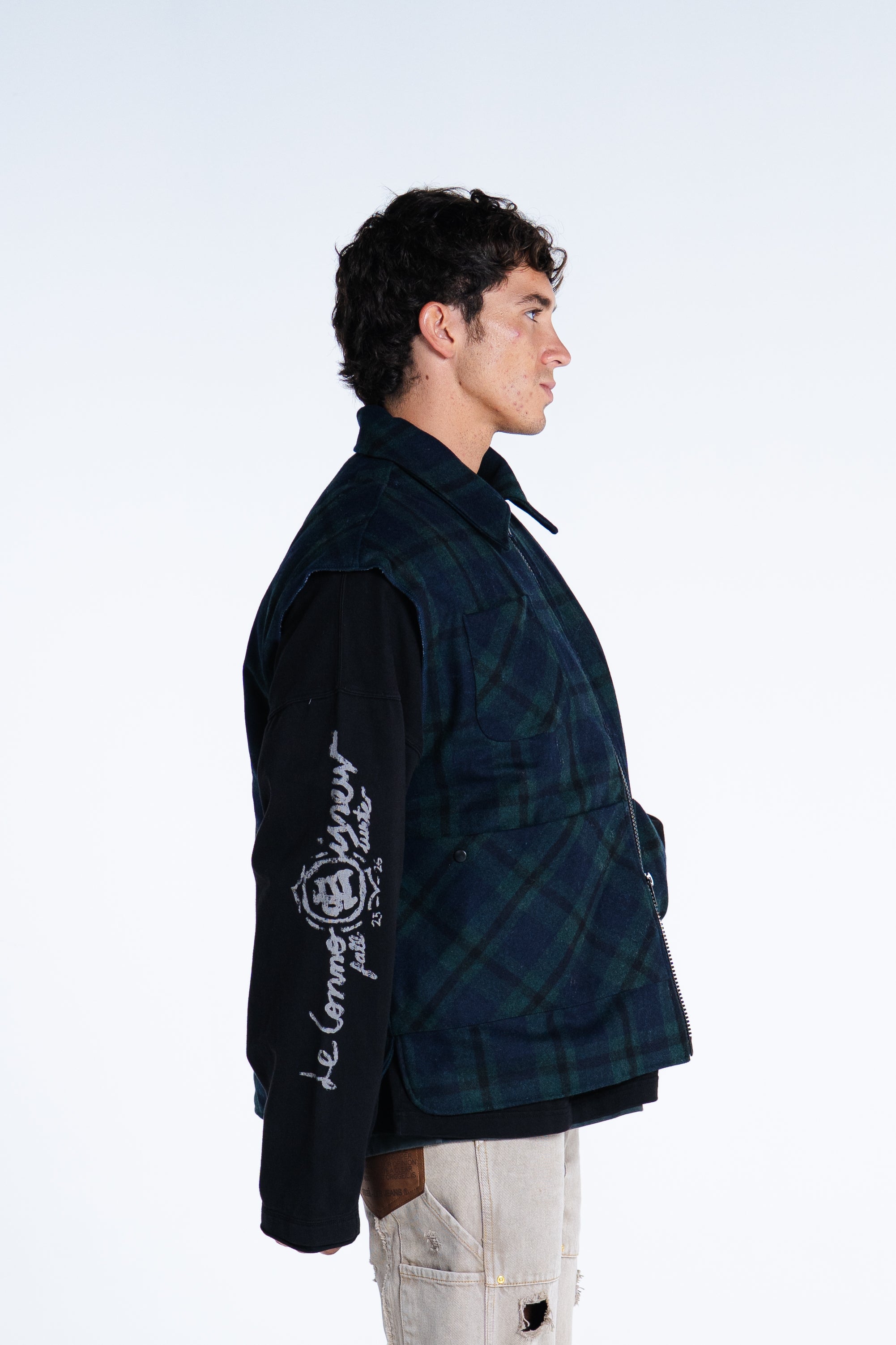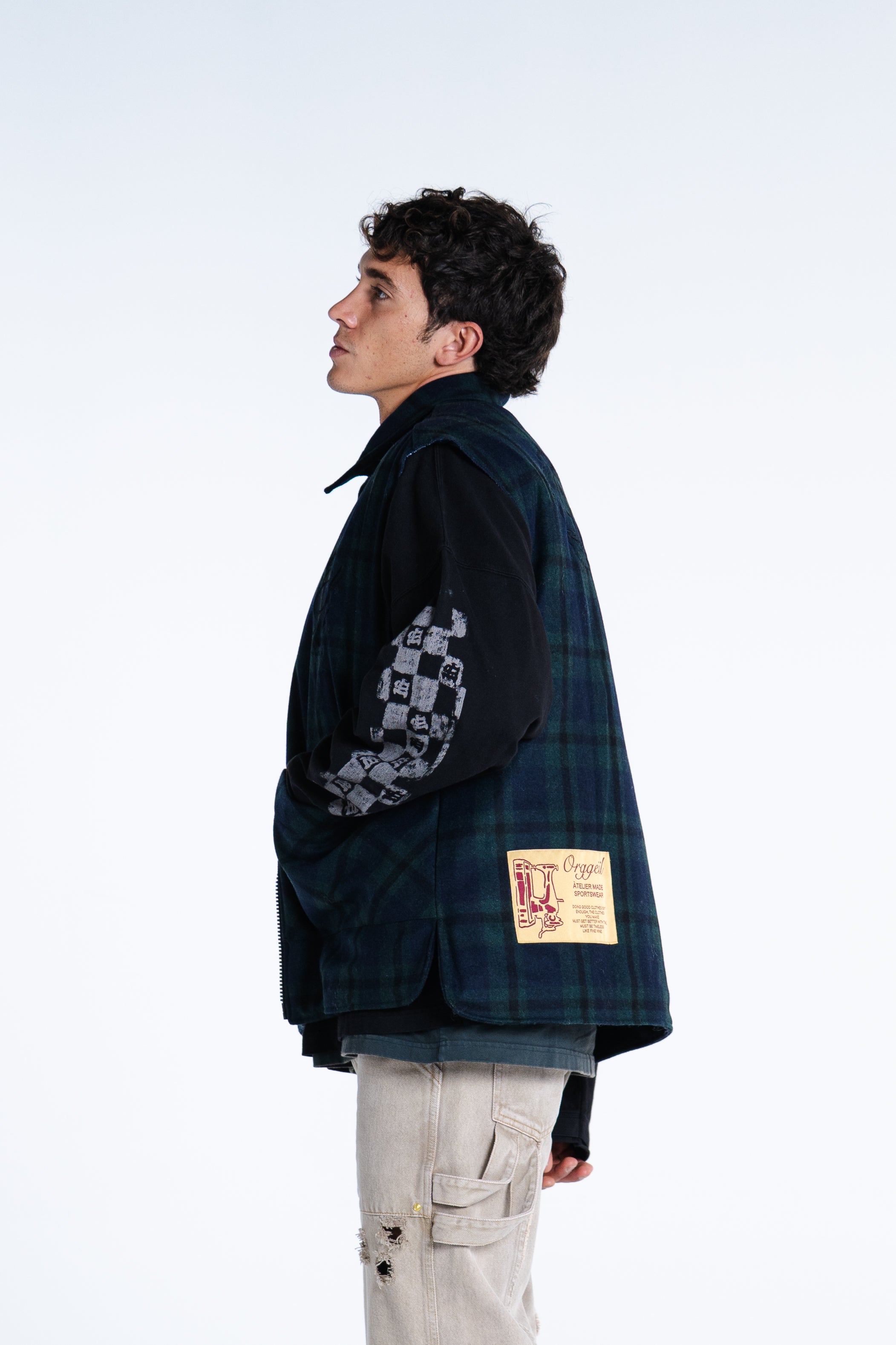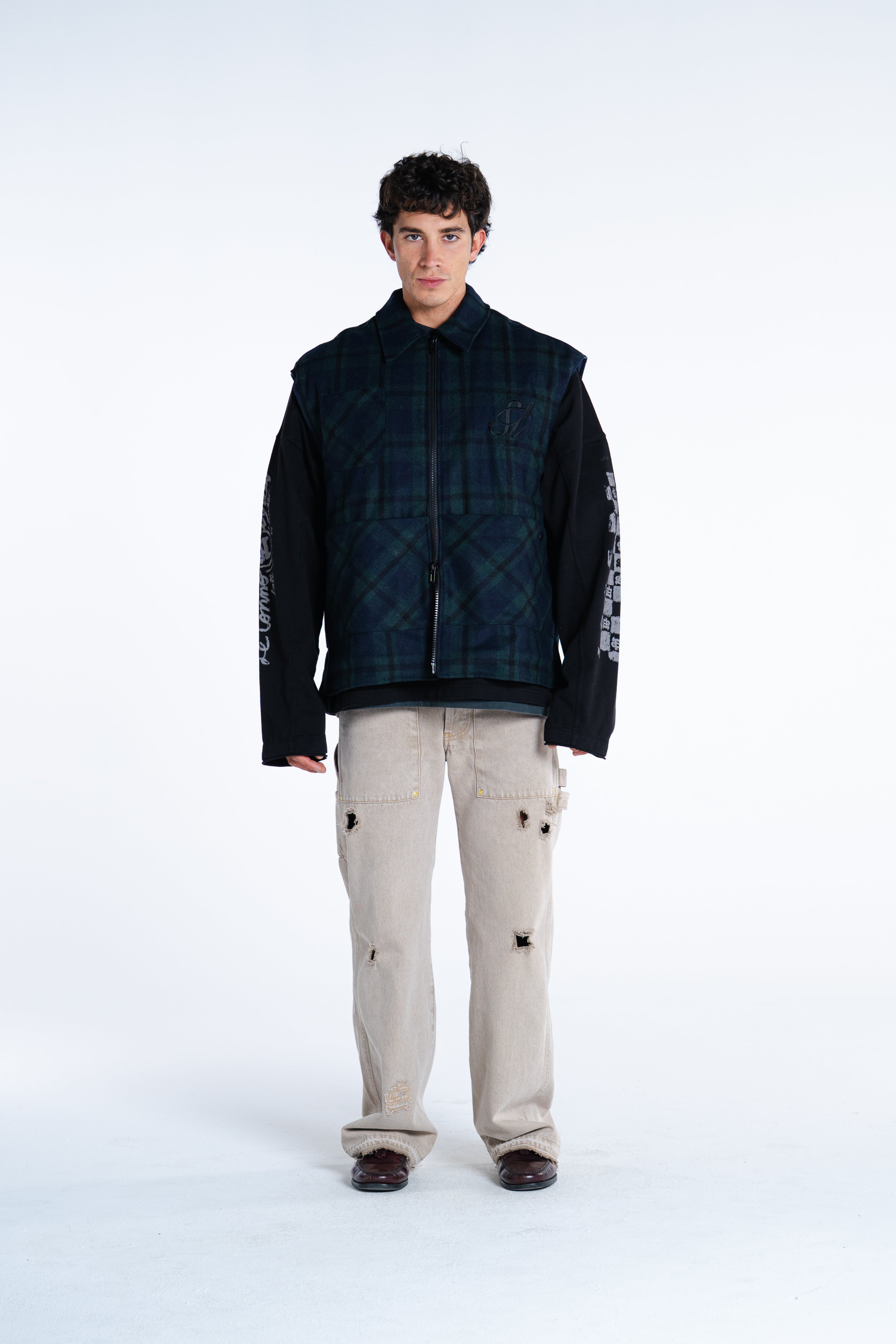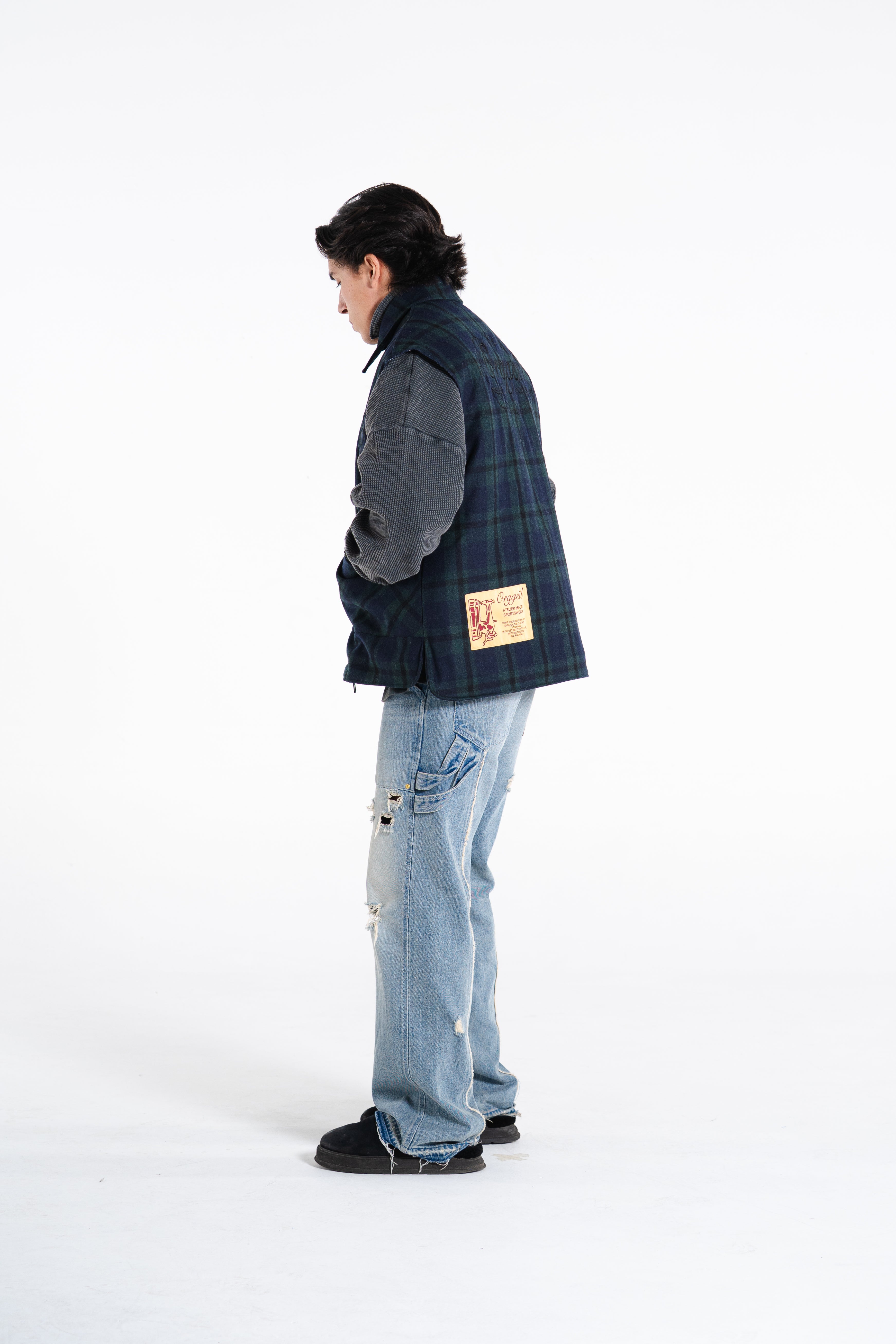 3 LAYERED VEST, EXTERIOR IN WOOL-COTTON BLEND, FOLLOWED BY DOUBLE MIDDLE INSULATOR LAYER AND AN INTERIOR DIAMOND QUILTED LINING IN A SILKY POLYESTER, FINISHED WITH A FULL BODY POCKETS & TONS OF DETAILS.